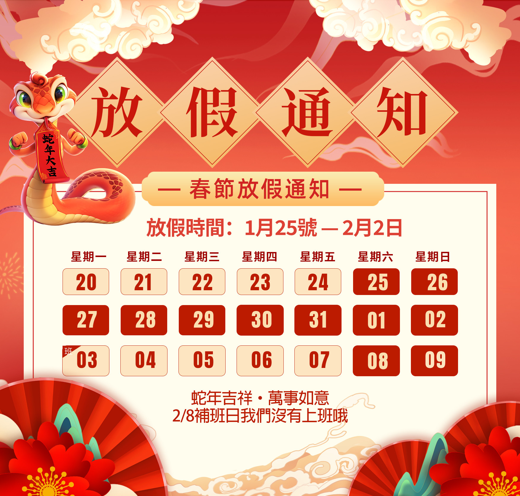 🧧2025年農曆春節休假公告!🧧