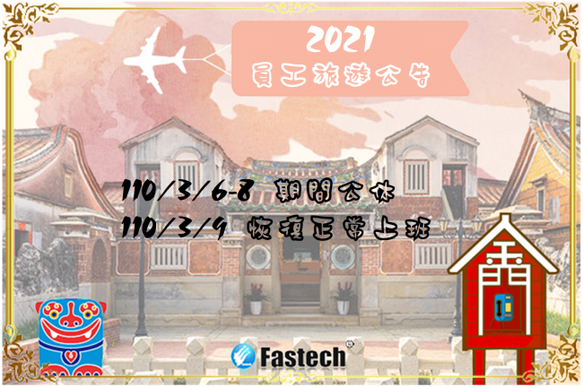 本公司將於 110/3/6 (星期六)至 110/3/8 (星期一),舉辦年度員工旅遊,