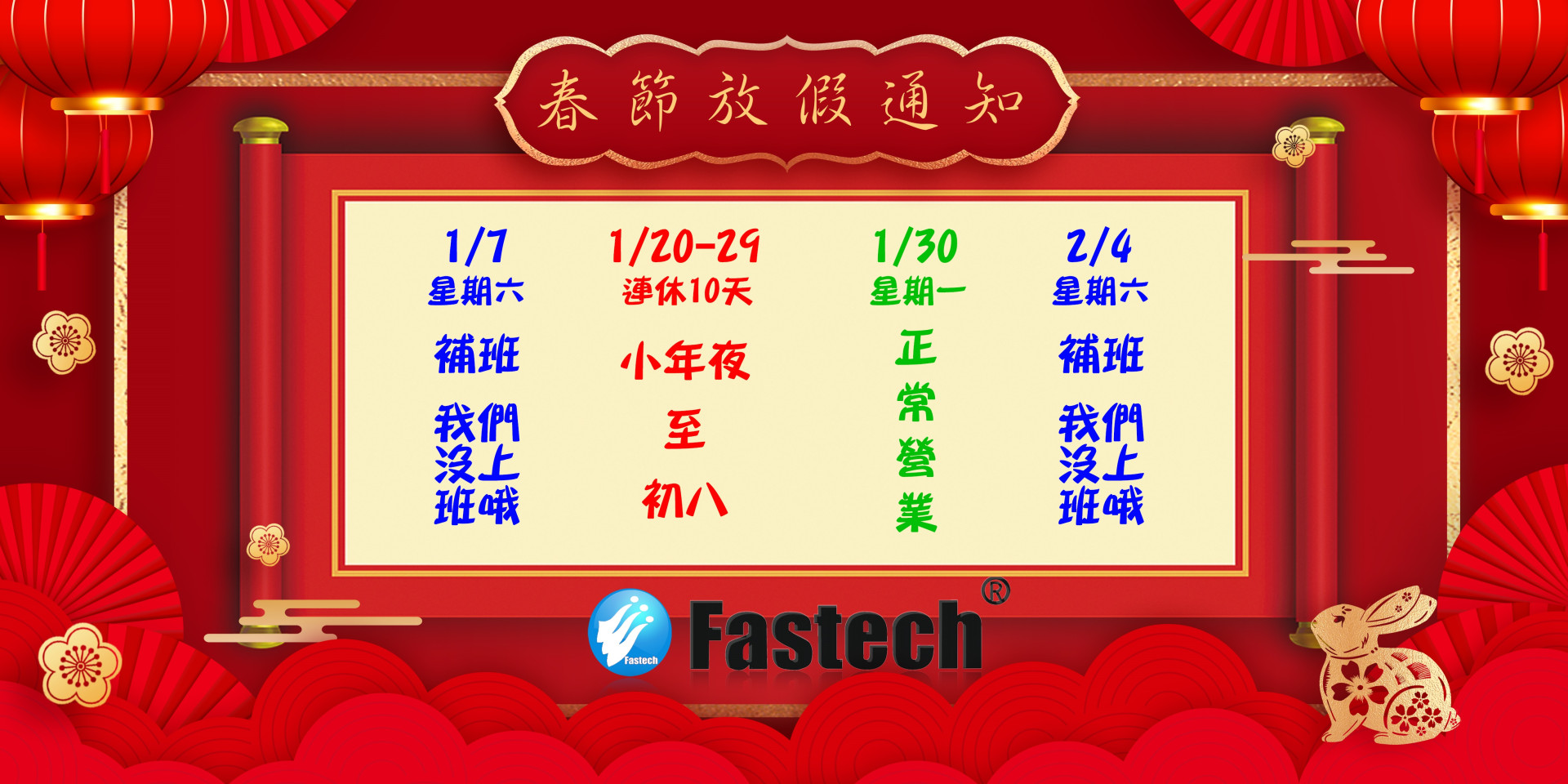2024年農曆春節休假公告!!