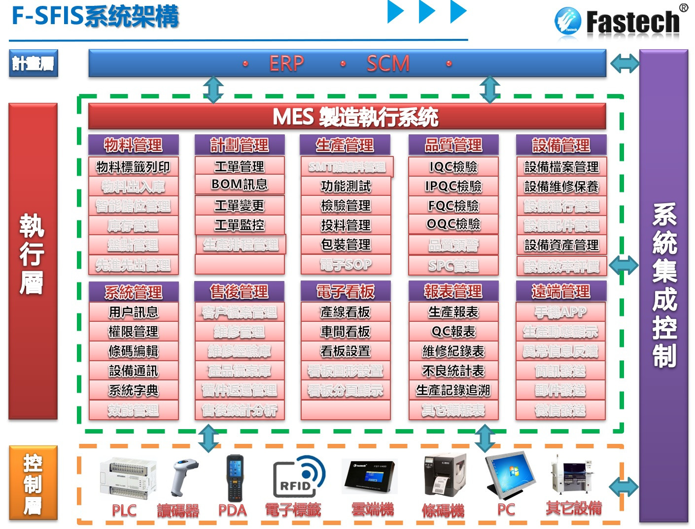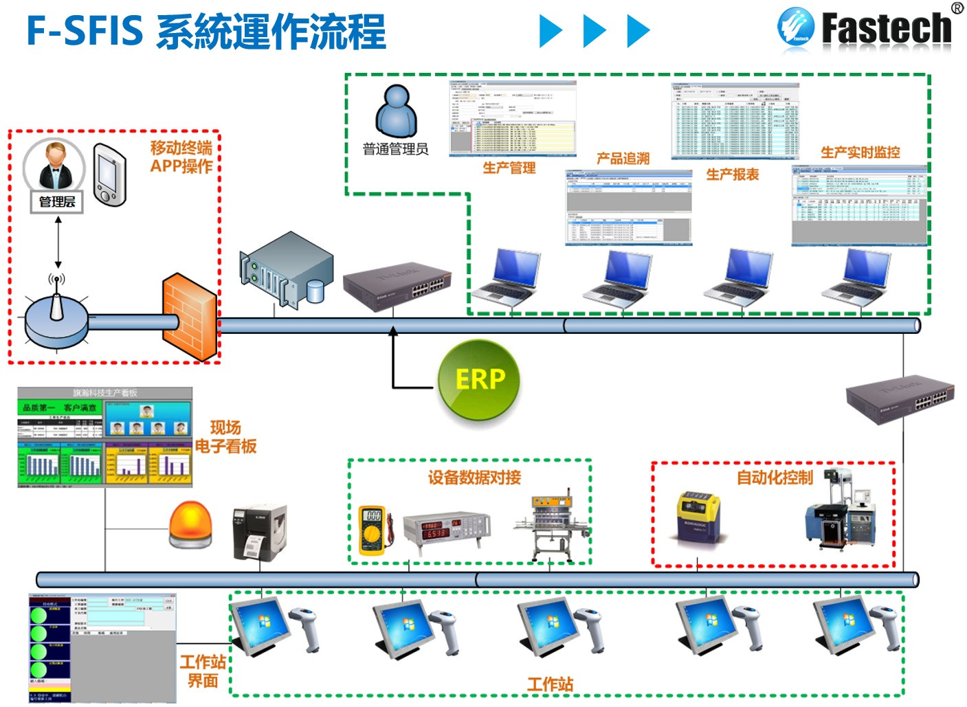 SFIS英文全稱Shop Floor Information System,中文名稱生產現場管控系統(或現場信息整合系統),它對製造業的意義重大,它具有工廠製造過程防錯、資源追踪、實時分析等管理功能。從公司整體運作來看,它連接於上層之製造業ERP系統、供應鏈管理系統(SCM)和現場作業/生產設備之間,提供實時且準確的實際生產數據。進而有助於管理者制定運籌計劃(Logistics Planning) 。從現場管理來看,它整合了工廠現場各單位(如生管、製造、品管等)的各項數據,使各單位得以迅速得到作業所需的信息,以提升生產效率、產品質量與客戶滿意度。